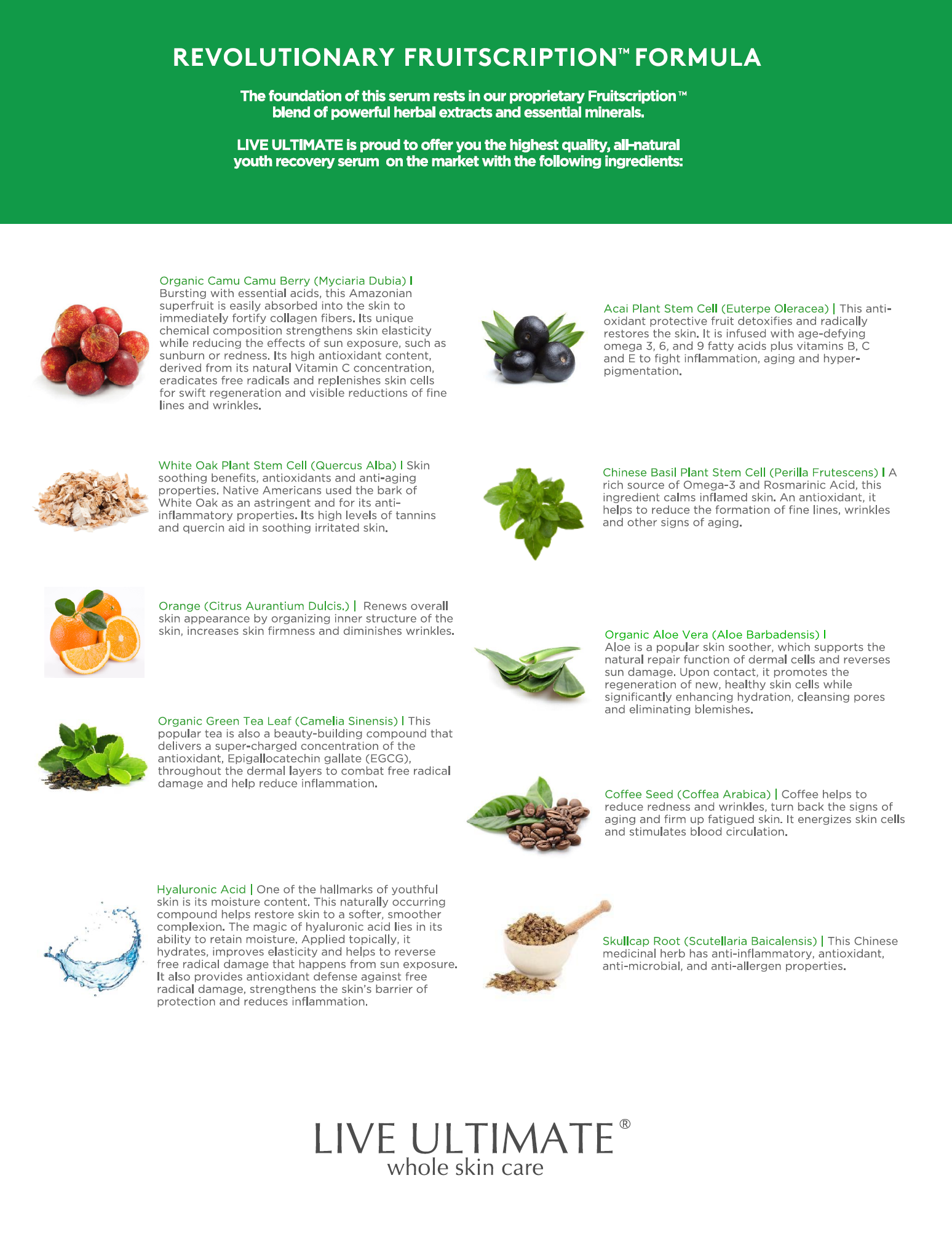 Live Ultimate’s Youth Recovery Serum absorbs into the molecular structure of skin to directly combat signs of aging for complete restoration and protection.