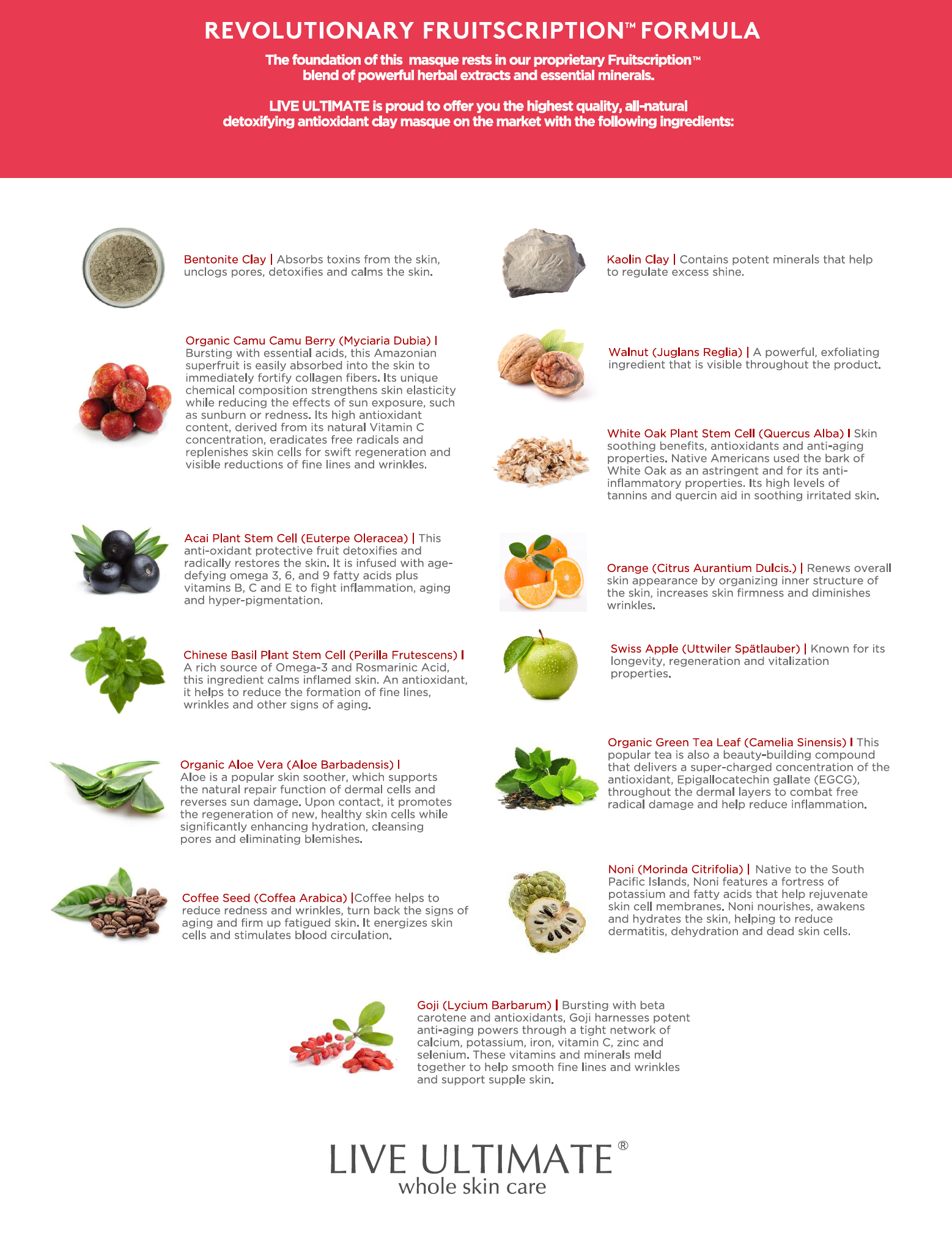 Unlike other masques, which only promise immediate visible results, CamuClay triggers near-instant results while providing long-term, nourishing and anti-aging benefits with our proprietary Fruitscription™ blend of exotic superfruits and 5 naturally-derived plant stem cells: