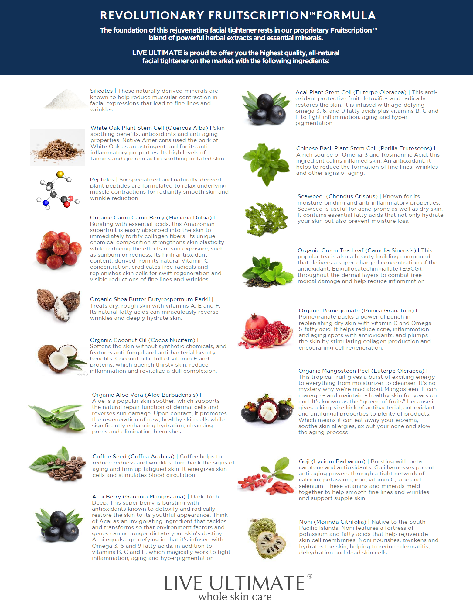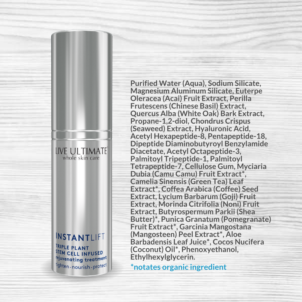 Live Ultimate’s InstantLift formula is a potent anti-aging serum that includes the following active ingredients: